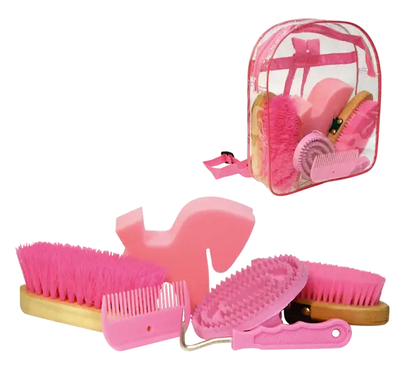Grooming Kit BackpackAlles overzichtelijk ingepakt in een transparante rugzak. Bevat:• Kunststof rugzak• Spons• Manen borstel• Manen kam• Rosborstel• Lichaamsborstel• Hoef krabber